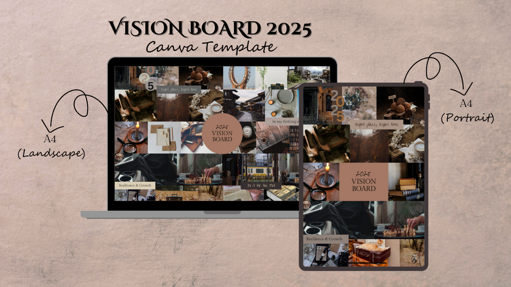 Step into Slay'25 with this customizable Vision Board Canva Template! Designed for dreamers, doers, and glow-up enthusiasts, this template is your ultimate tool to visually manifest your goals in style. Perfect for printing or digital use, it helps you curate a personal vibe that screams "In my thriving era."
